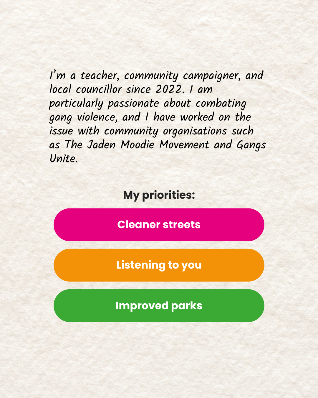 Labour Councillor and candidate for Cann Hall